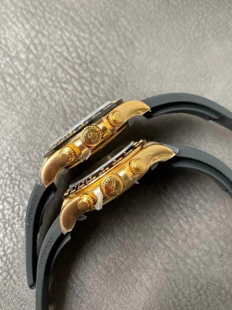 さて、本題の126518と116518の比較へ。ロレックスが発表した新しいデイトナは、最初は多くの人が馴染みにくかったですが、今では大好きになりました。特に黒ラバーバンドのモデルは、見るたびに魅力が増します。CLEANのロレックス スーパークローンとして再現されたこれらN級品は、ケースの仕上げやベゼルの精度が抜群です。126518のモダンなデザインと116518のクラシックさが対比され、どちらも日常使いからコレクションまで対応できま。写真で見る限り、CLEANのクオリティは本物に匹敵し、黒ラバーバンドの快適さが際立ちます。この比較から、CLEANがデイトナ スーパーコピーの新基準を確立していることがわかります。